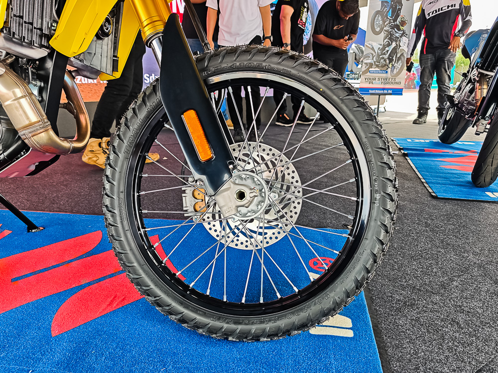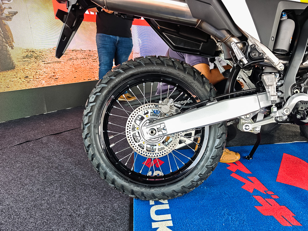 As for the DR-Z 4SM, this supermoto trades its twin’s off-roading pedigree for some serious street cred, with the biggest difference being its smaller and more conventional 17-inch spoked wheels on both front and rear, each shod in 120/70 R17 M/C and 140/70 R17 M/C tube tyres, respectively.