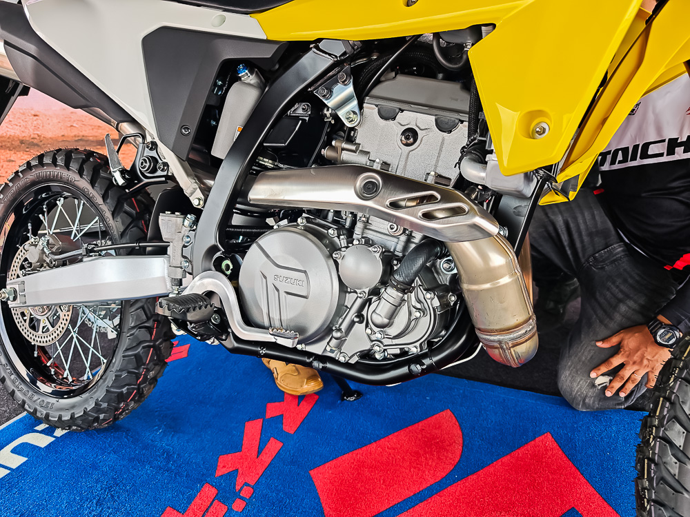 As a result, the DR-Z 4S boasts a healthy ground clearance of 300 mm, while its seat height reads at 920 mm and the whole bike tips the scale at 151 kg, Suzuki claims.