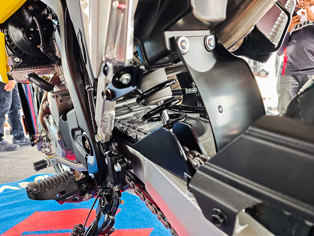 Said engine is then mated to a 5-speed manual gearbox that features the Suzuki Clutch Assist System (SCAS) slipper clutch assist for smoother gear shifts, with the final drive being sent to the rear wheel via a chain drive system.
