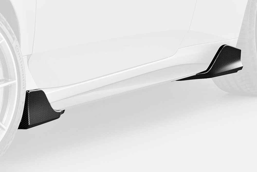 - Sides: Carbon side skirts that serve as a sporty visual extension along the lower profile of the car