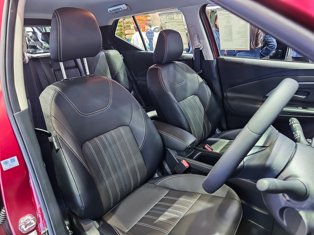 Thai buyers can get the cabin upholstered in black leather as standard or opt for the more contrasting blue-and-white colour scheme, and the leather trim is now applied to more surfaces than before, including on the dashboard, central console, and steering wheel. Drivers get a six-way powered seat, while front passengers need to settle for a manually-adjustable one instead.
