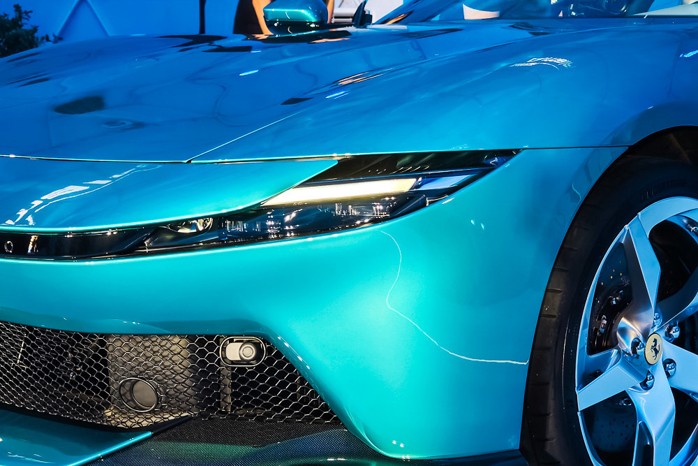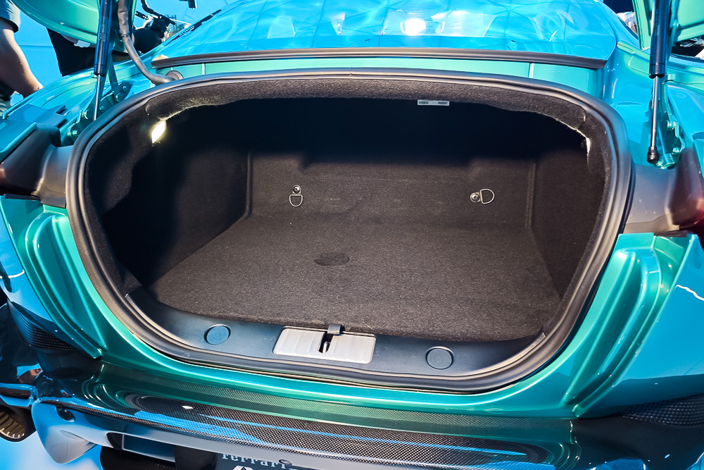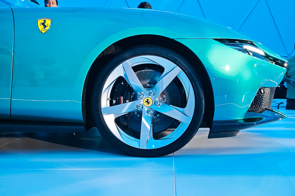 Some key changes include sharp LED headlights with air ducts integrated into them, slim quad LED taillights a la the Roma, 20-inch forged aluminium five-spoke wheels shod in either Bridgestone Potenza Sport or Pirelli P Zero tyres, a slew of wedge-shaped design elements with sleek lines, a quad-piped exhaust system integrated into the carbon fibre rear diffuser, a ducktail rear spoiler with an integrated active rear wing, and many more.