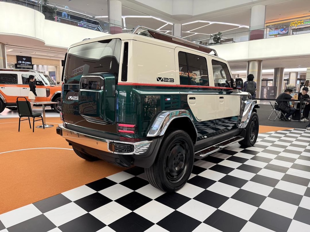 The design retains the V23’s boxy and rugged silhouette while incorporating classic elements synonymous with iconic off-road vehicles — evoking a spirit of toughness and freedom of adventure.