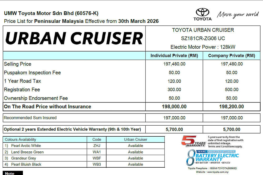 Already shown in Indonesia, the Urban Cruiser EV is said to be offered in three variants in said market, although the leaked price list shows that only the mid-spec FWD variant is bound for our market, priced at RM198,000.